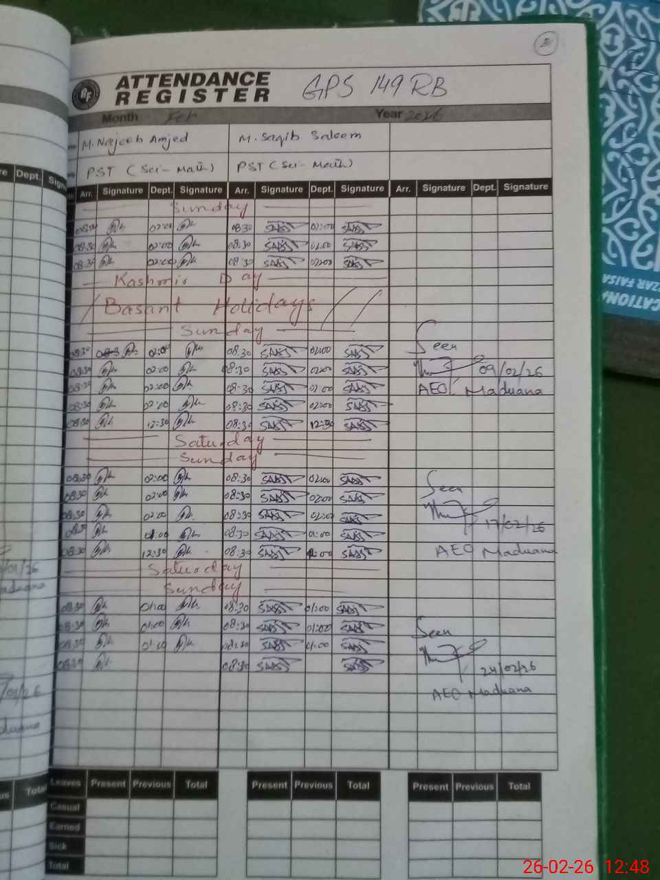 | Name: MU**** NA**** AM**** Designation: (School Headmaster's/Headmistress's) PST ( SCI ) Phone/Cell Number: 03**** |