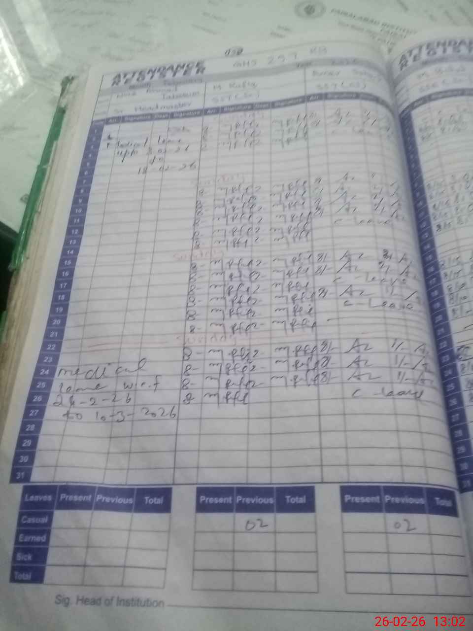 | 33**** | Ni**** Ah**** Ta**** | Sr. Headmaster | Regular | 0 | 0 | 0 | 0 | 0 | 0 | 0 | 0 | 0 | Medical |