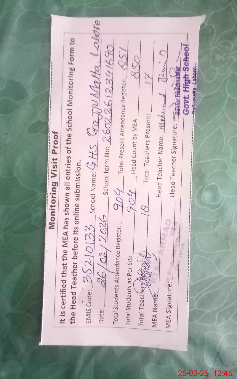 | EMIS Code: 35210133 | Name of School: GHS GAJU MATTA | |||