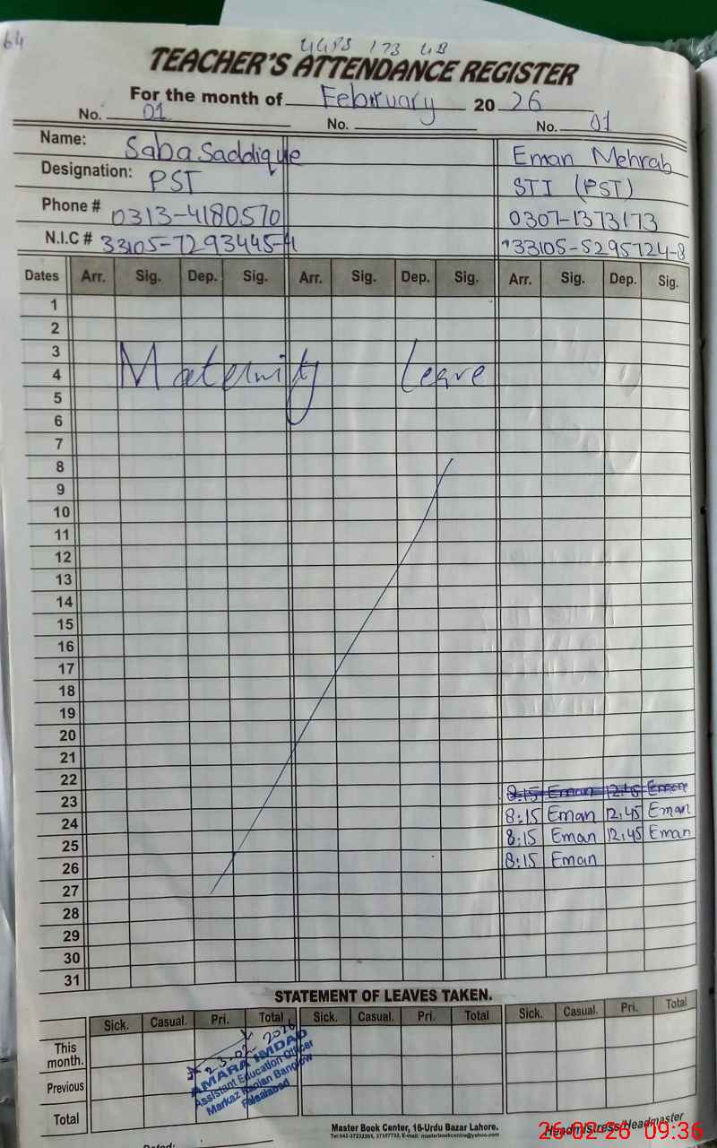 | 33**** | Sa**** Si**** | PST Arts | Regular | 0 | 0 | 0 | 0 | 0 | 0 | 0 | 0 | 0 | Maternity |