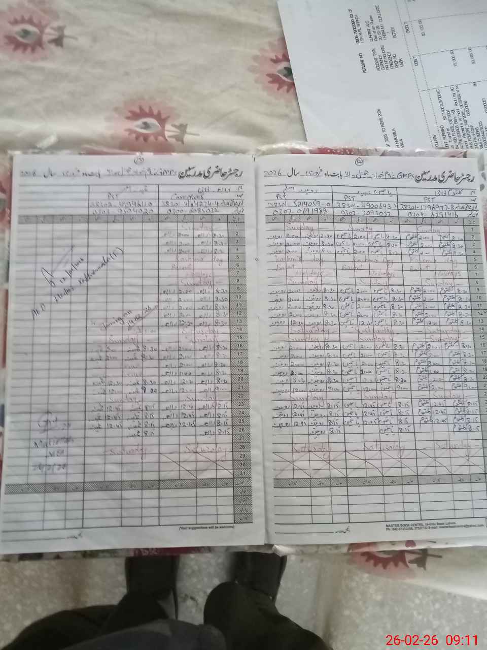 | CNIC | Full Name | Designation | R/C | Absence During Last Calender Month |