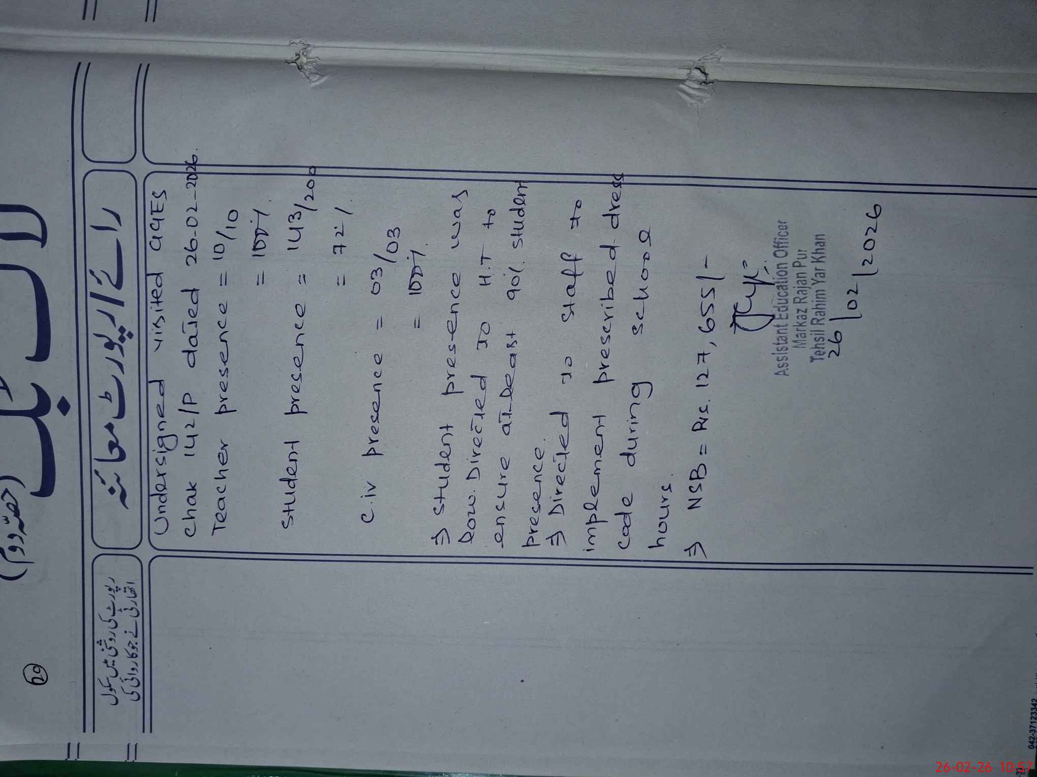 | Certified that this School was Inspected by the Undersigned MEA/DMO Today and the Information Stated Above is as Per Record. | |||||