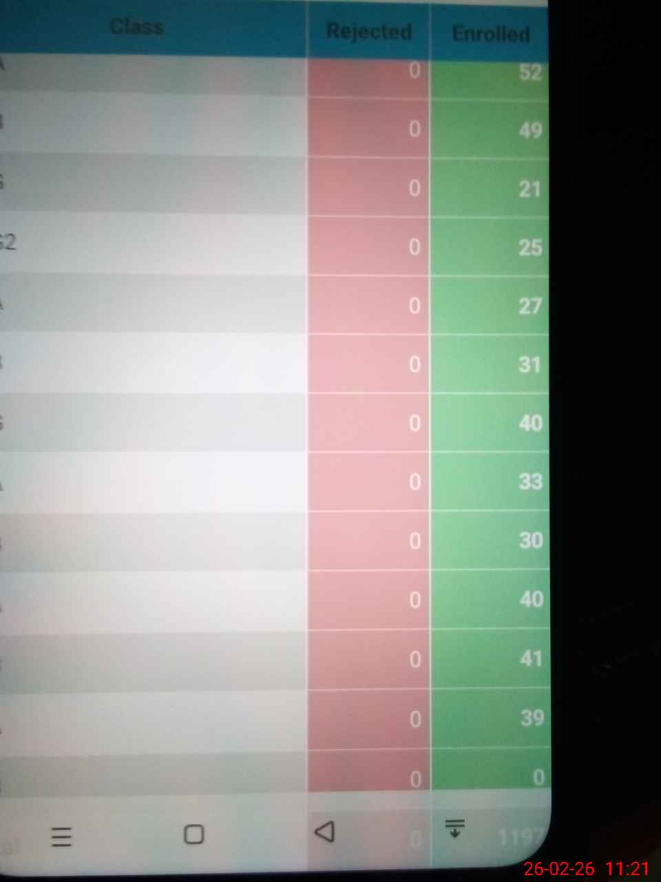 | Total no. of Classrooms: 18 No. of Classrooms Used for Teaching: 16 No. of Classrooms Storing Old Furniture, FTBs, etc: 0Comments if Any: 0 |