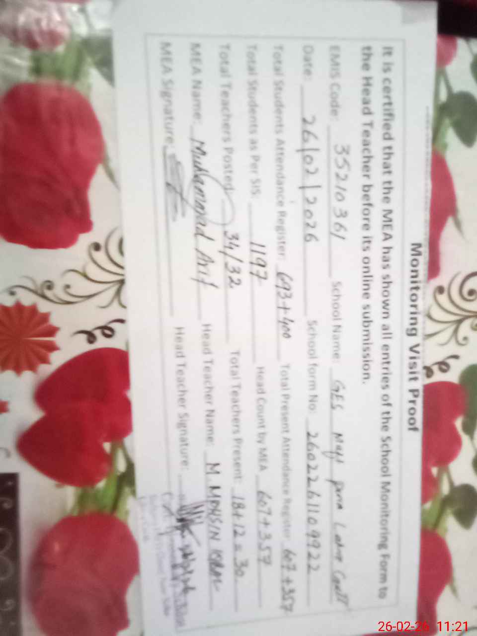 | Certified that this School was Inspected by the Undersigned MEA/DMO Today and the Information Stated Above is as Per Record. | |||||