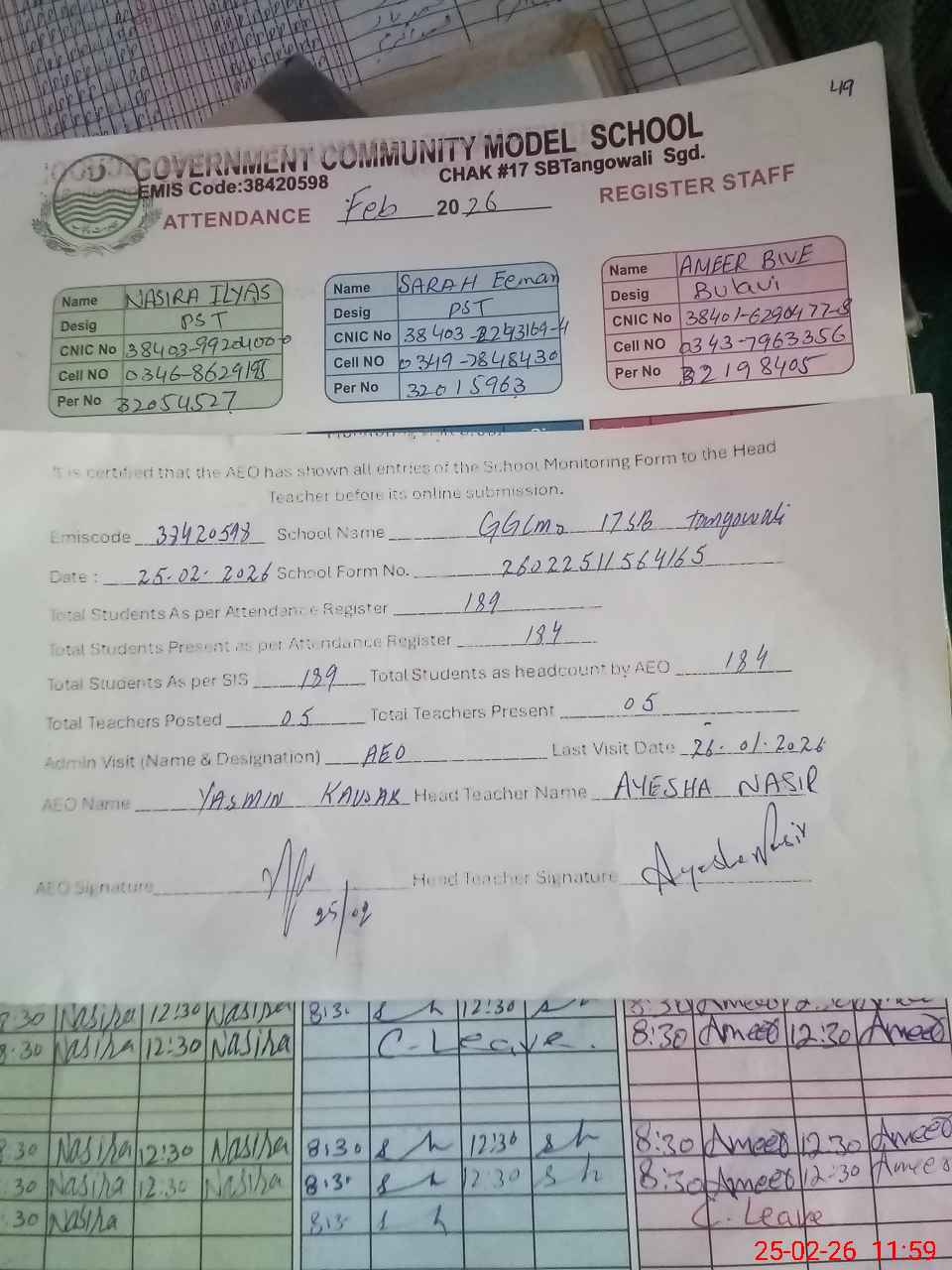 | EMIS Code: 38420598 | Name of School: GGCMS CHAK NO.17 SB TANGOWALI | |||