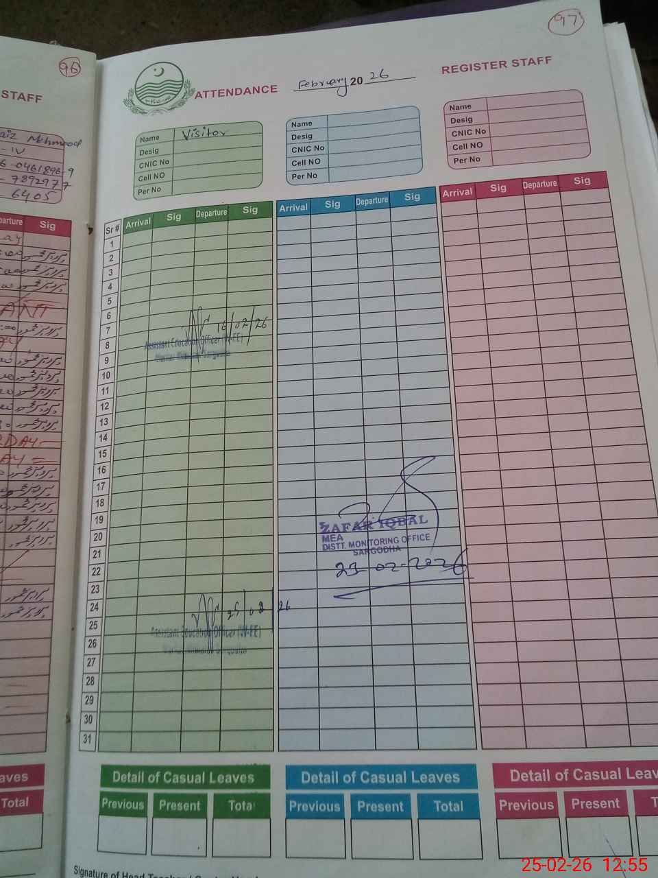 | CNIC | Full Name | Designation | R/C | Absence During Last Calender Month |