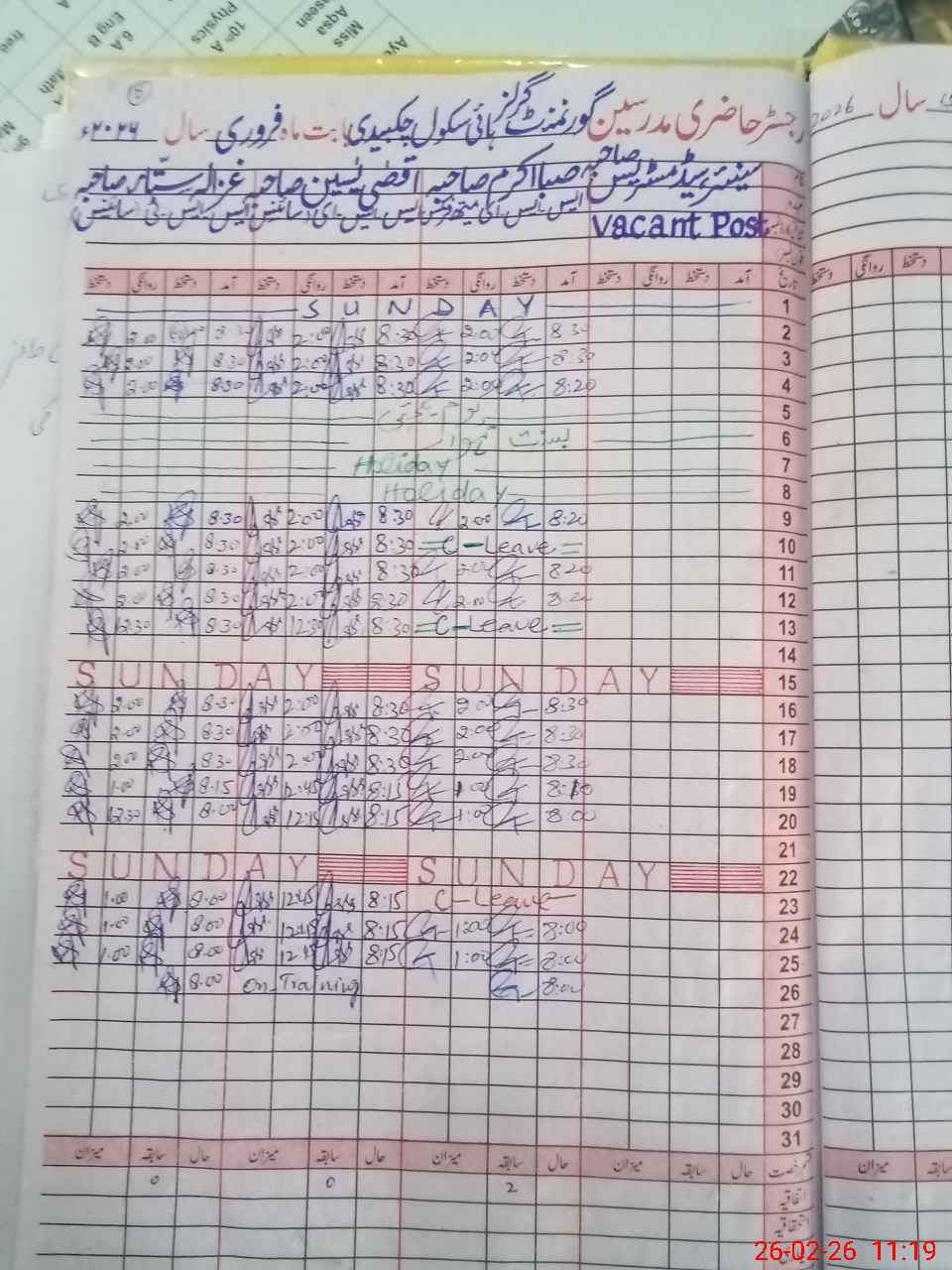 | Leave | Duty | Absent | Maternity | Medical | Ex- Pak |