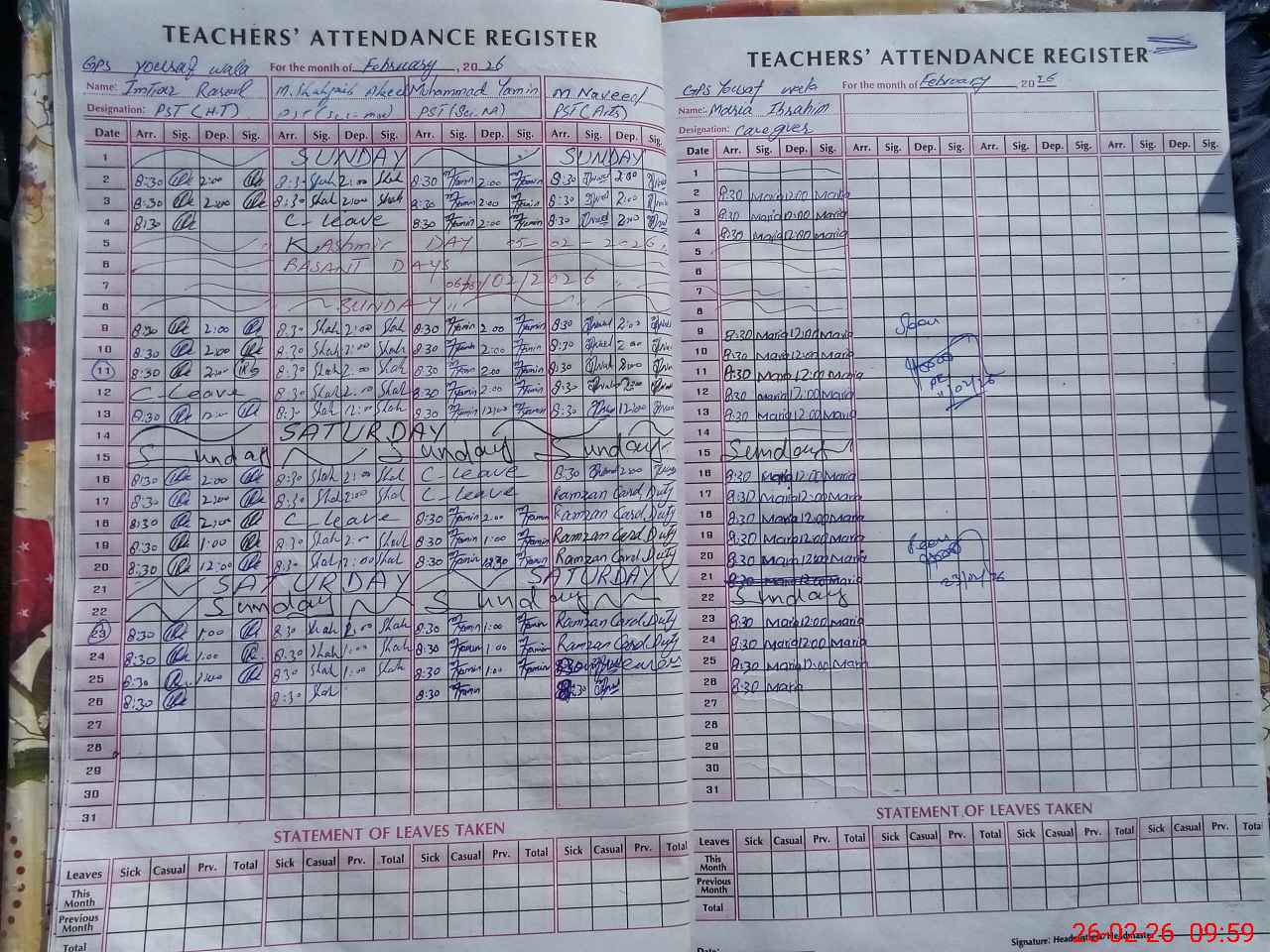 | Leave | Duty | Absent | Maternity | Medical | Ex- Pak |