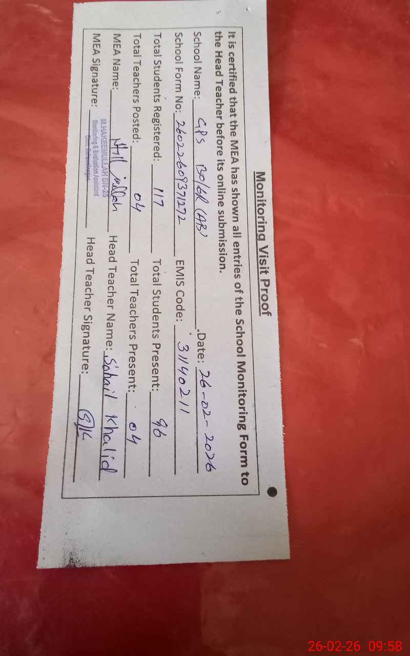 | EMIS Code: 31140211 | Name of School: GPS CHAK NO 130/6-R AB | |||