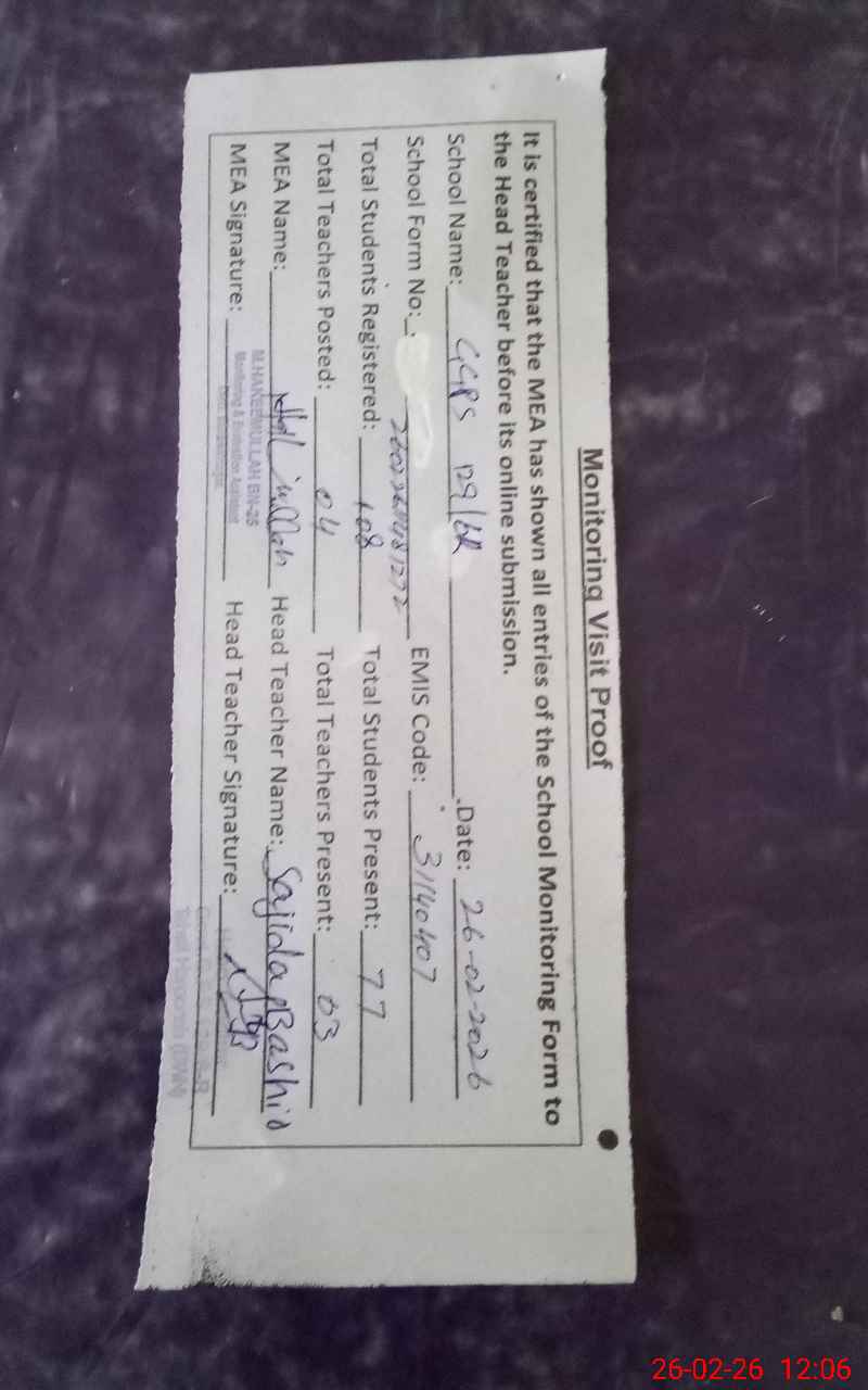 | Attendance Register | Head Teacher | MEA with School | Visit Proof |