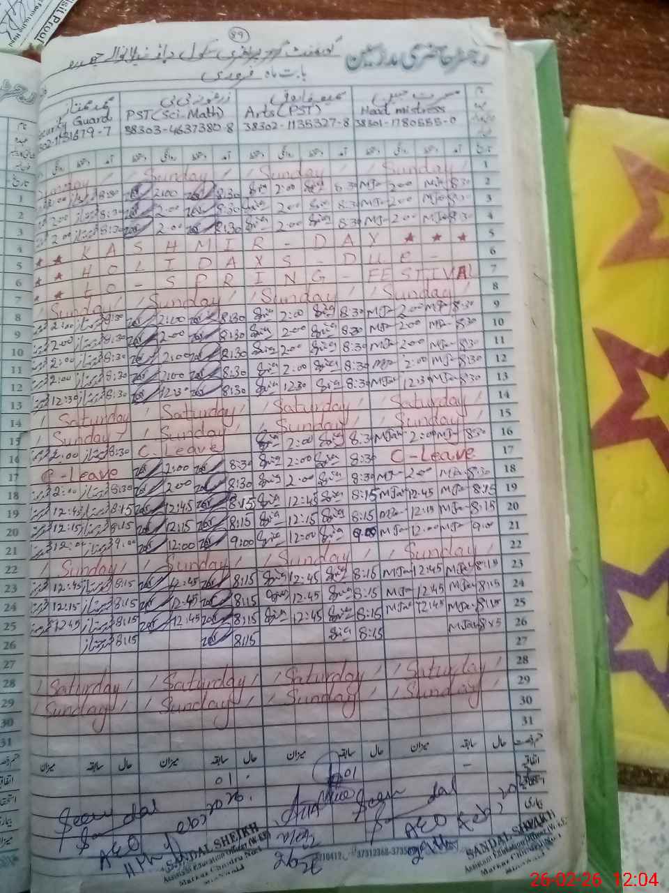 | Name: Mu**** Ja**** Designation: (School Headmaster's/Headmistress's) PST Arts Phone/Cell Number: 03**** |