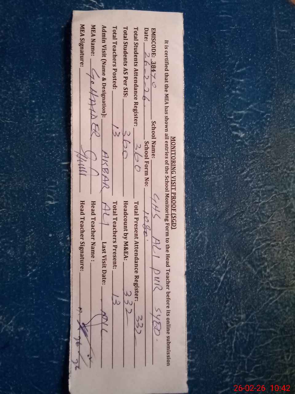 | EMIS Code: 38470075 | Name of School: GHS ALI PUR SYEDAN | |||