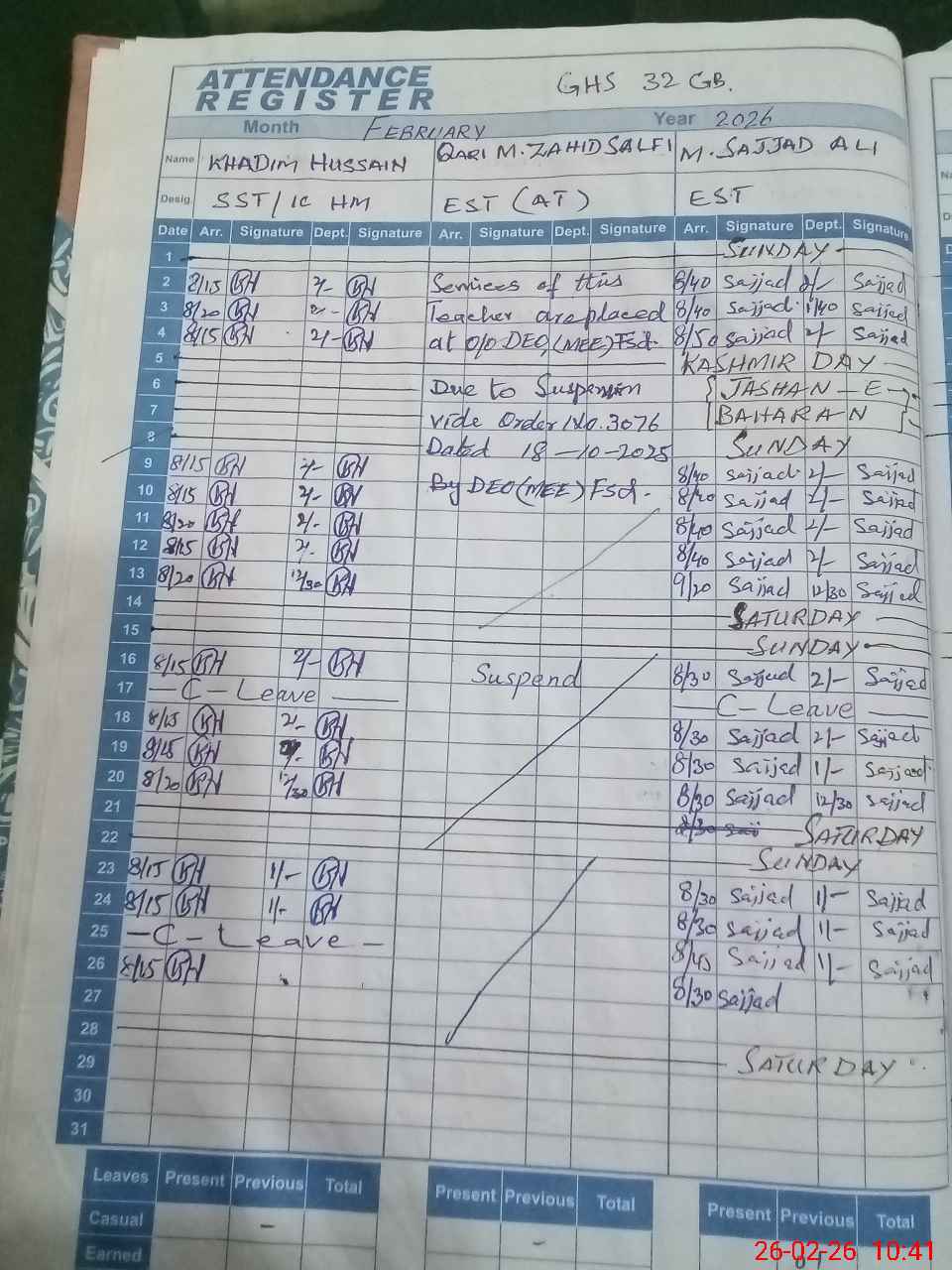 | 33**** | Za**** Me**** | PST Science/Maths | Regular | 0 | 0 | 0 | 0 | 0 | 0 | 0 | 0 | 0 | Casual |