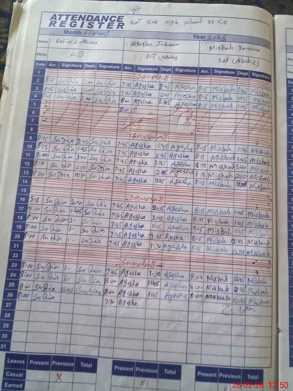 | 33**** | Fa**** Sh**** | PST Science/Maths | Regular | 0 | 0 | 0 | 0 | 0 | 0 | 0 | 0 | 0 | Absent (Un-Authorized) |