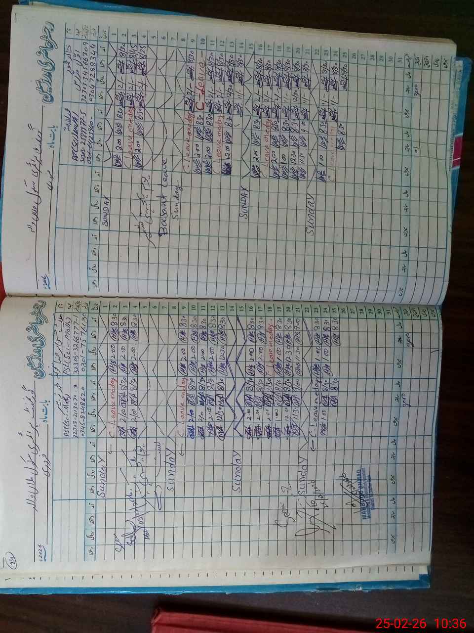 | Leave | Duty | Absent | Maternity | Medical | Ex- Pak |