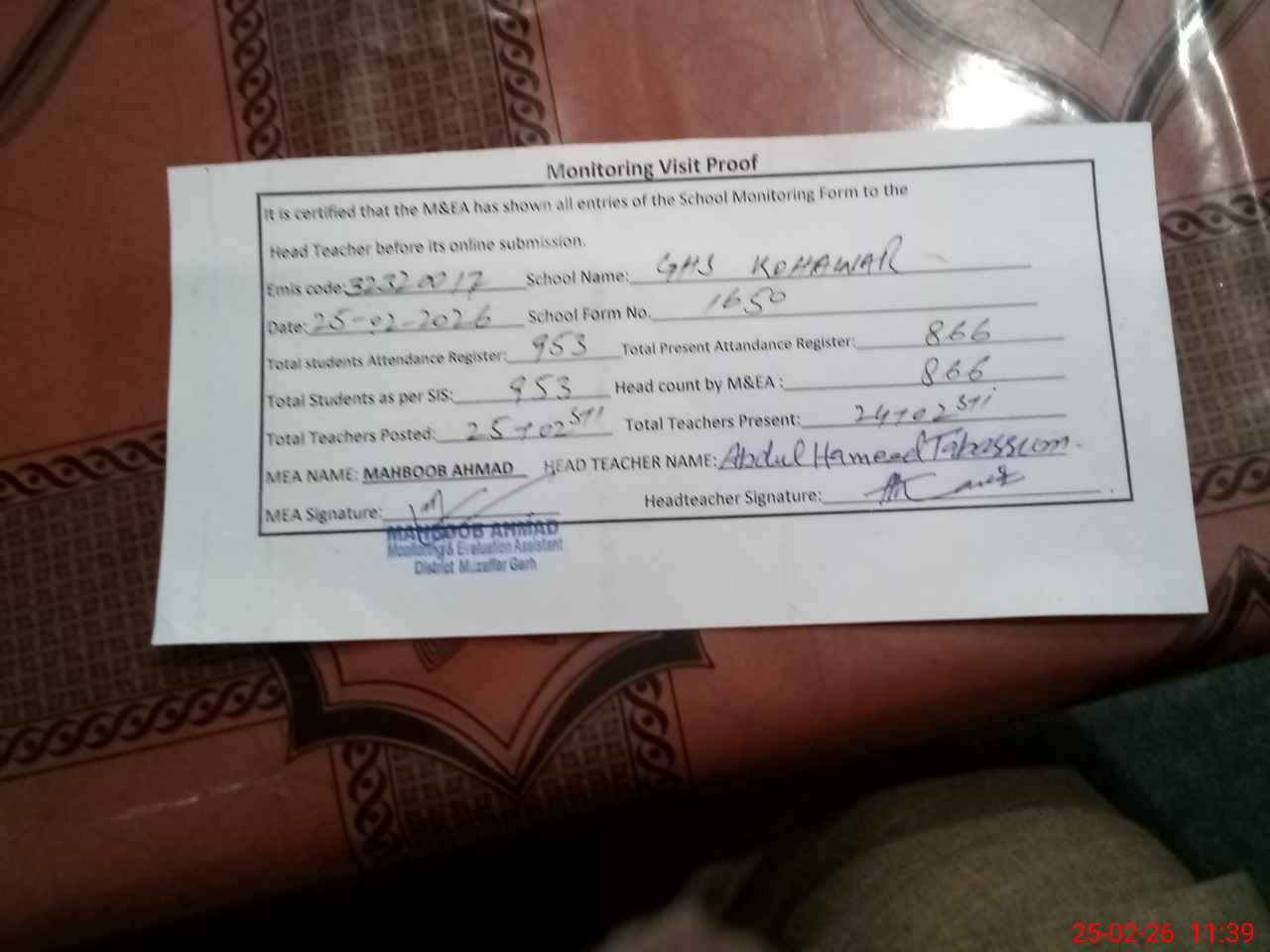 | EMIS Code: 32320017 | Name of School: GHS KOHAWAR | |||