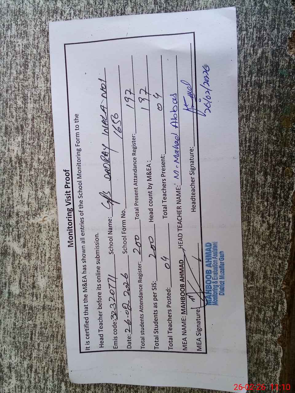 | EMIS Code: 32320771 | Name of School: GPS DADRAY WALA NO. 1 | |||