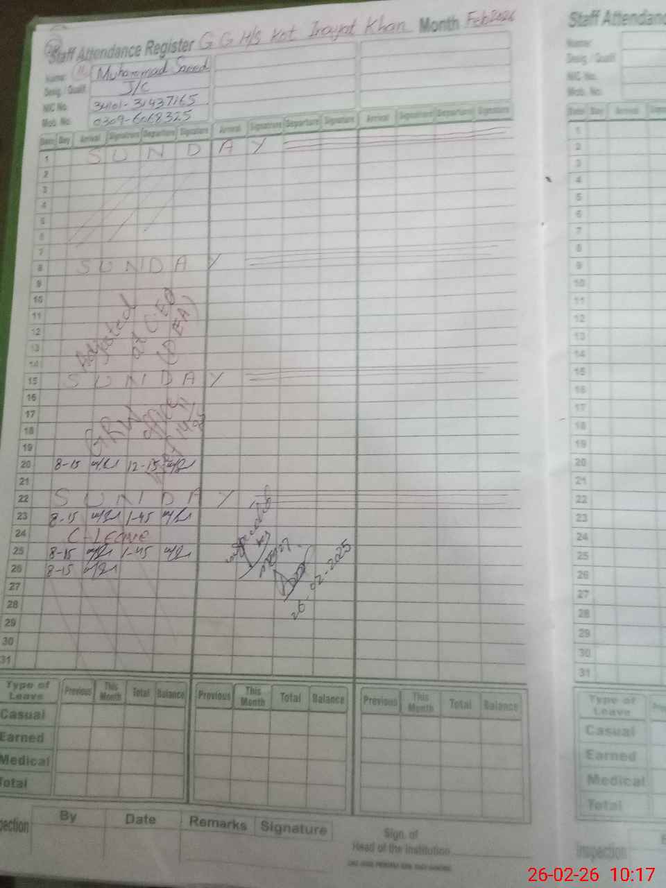 | 34**** | Ka**** Za**** | EST Science | Regular | 0 | 0 | 0 | 0 | 0 | 0 | 0 | 0 | 0 | Absent (Un-Authorized) |