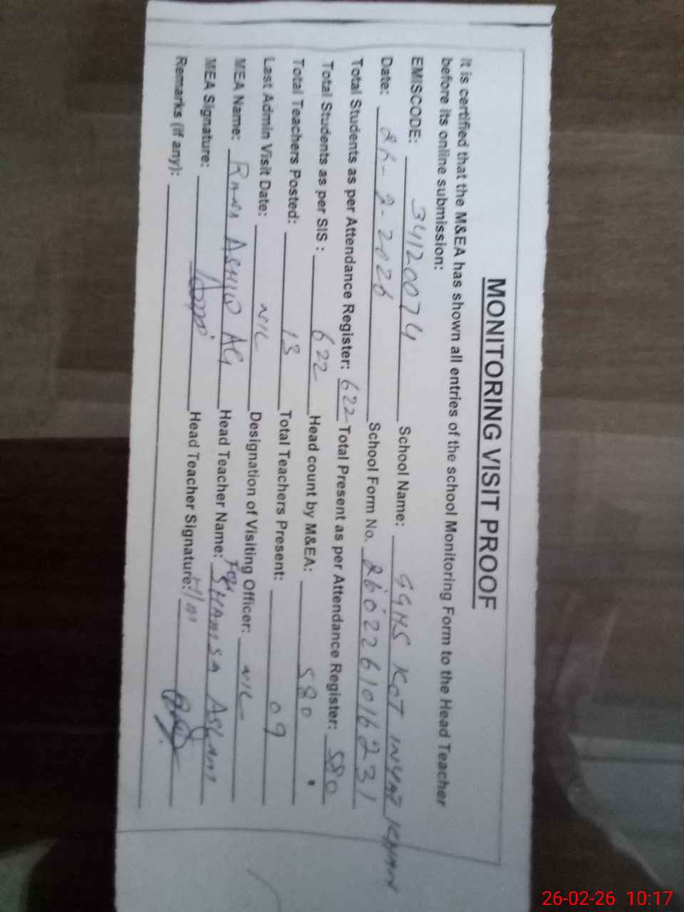 | EMIS Code: 34120074 | Name of School: GGHS KOT INAYAT KHAN | |||