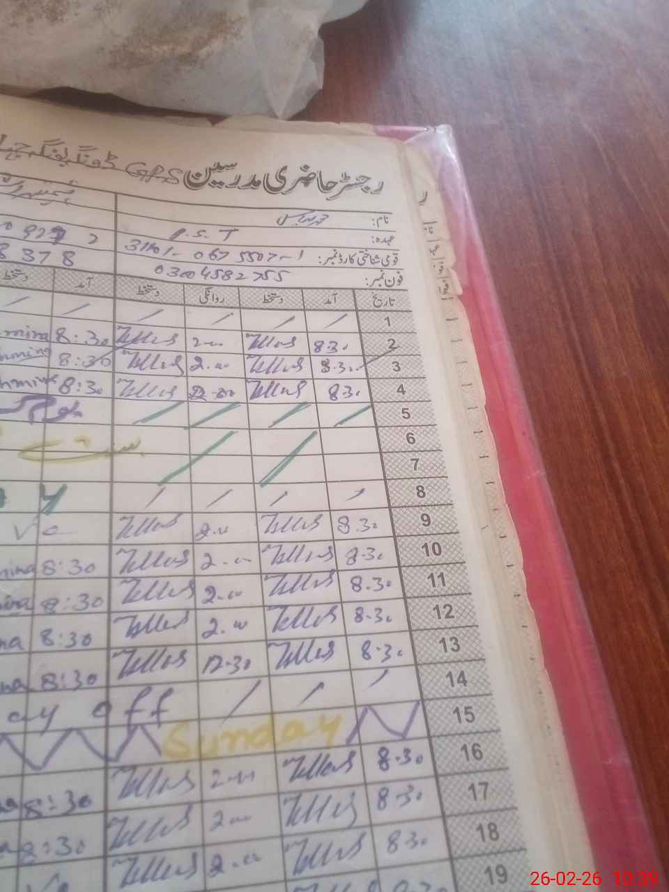 | CNIC | Full Name | Designation | R/C | Absence During Last Calender Month |