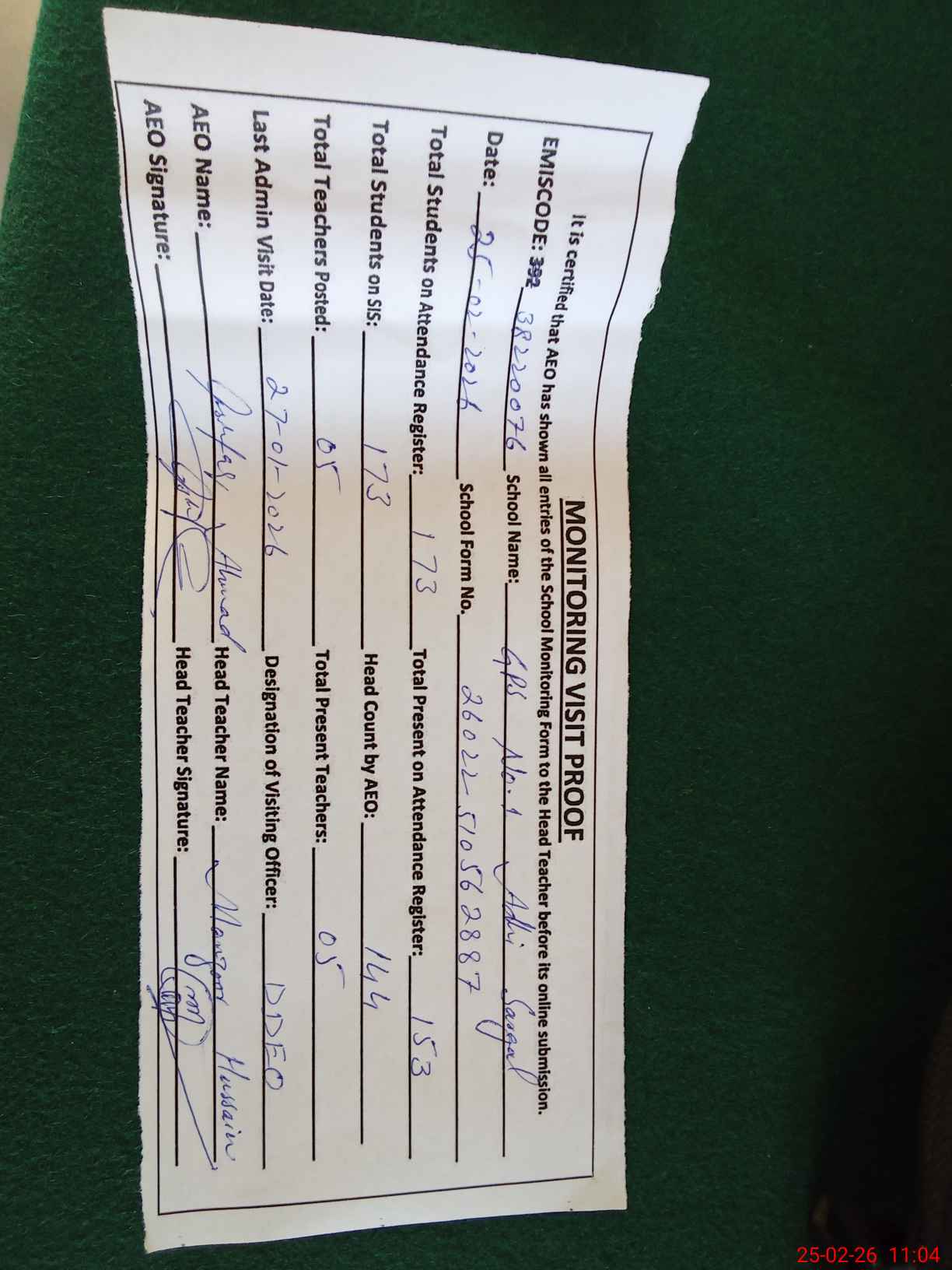 | EMIS Code: 38220076 | Name of School: GPS NO. 1 ADHI SARGAL | |||