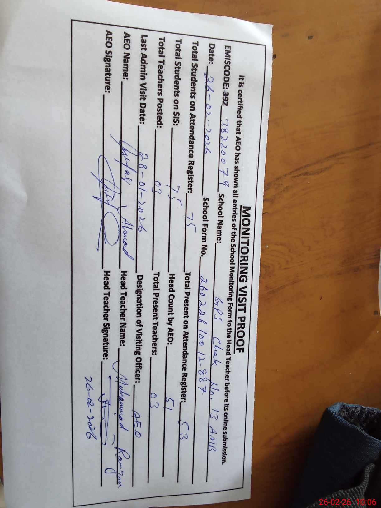 | Certified that this School was Inspected by the Undersigned MEA/DMO Today and the Information Stated Above is as Per Record. | |||||