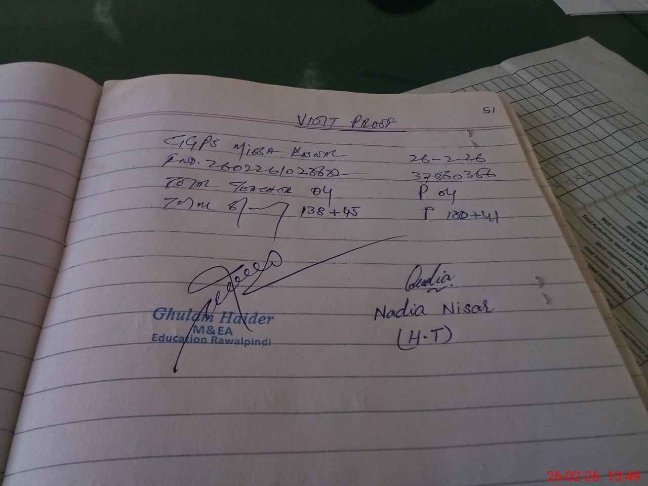 | Attendance Register | Head Teacher | MEA with School | Visit Proof |