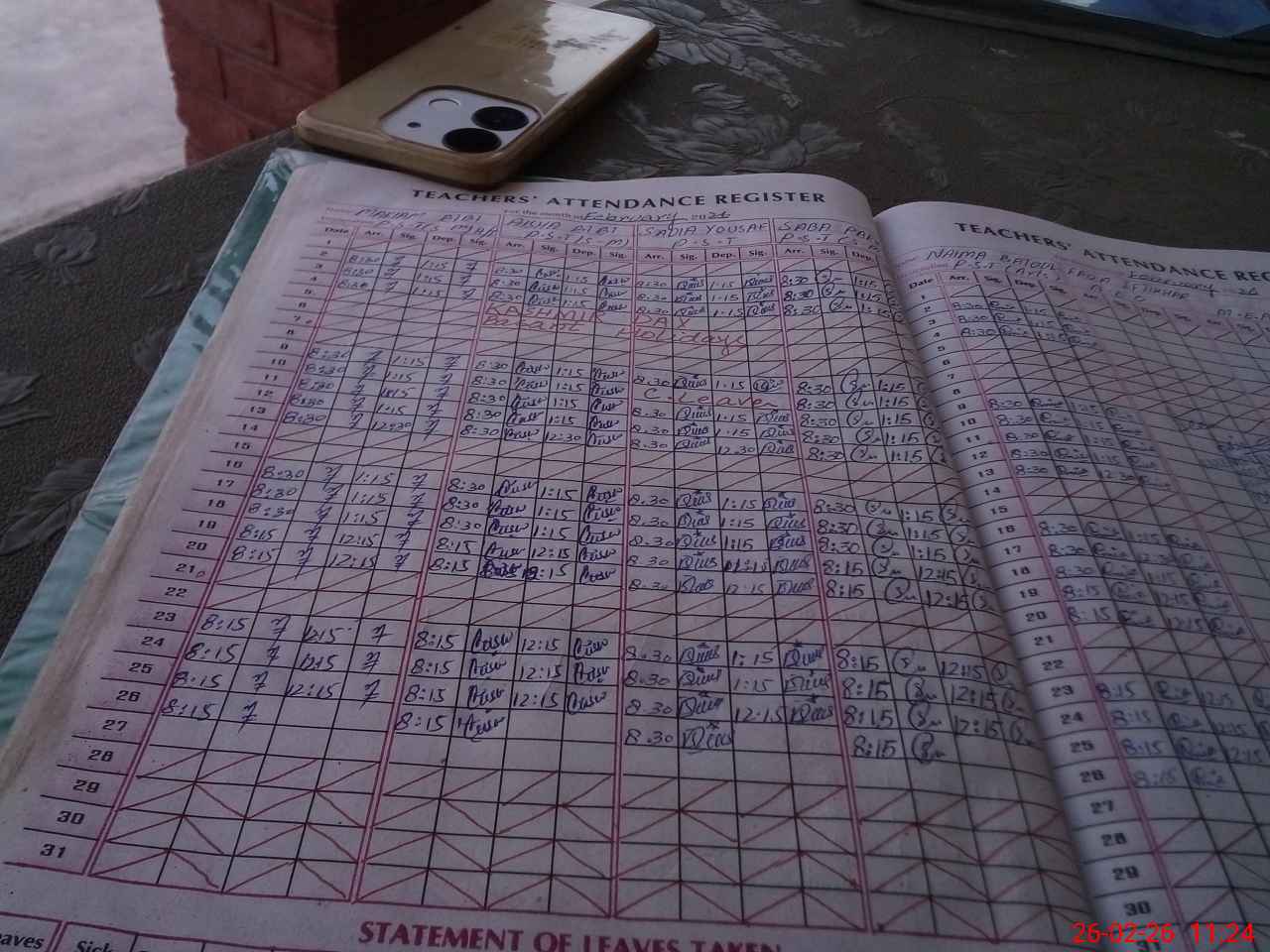 | Leave | Duty | Absent | Maternity | Medical | Ex- Pak |