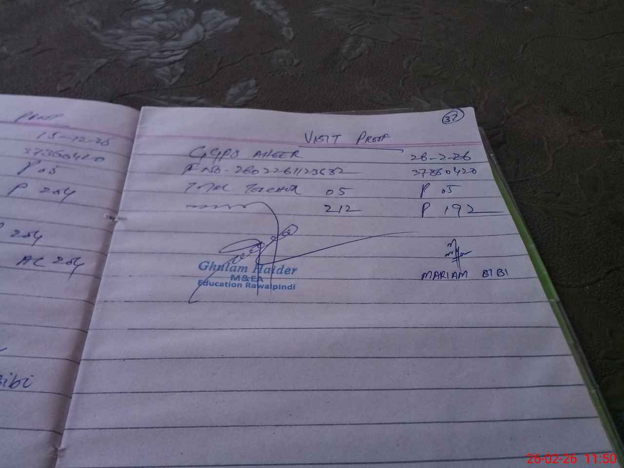 | Attendance Register | Head Teacher | MEA with School | Visit Proof |