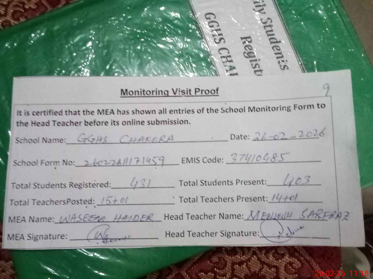 | EMIS Code: 37410485 | Name of School: GGHS CHAKORA CHAKWAL | |||