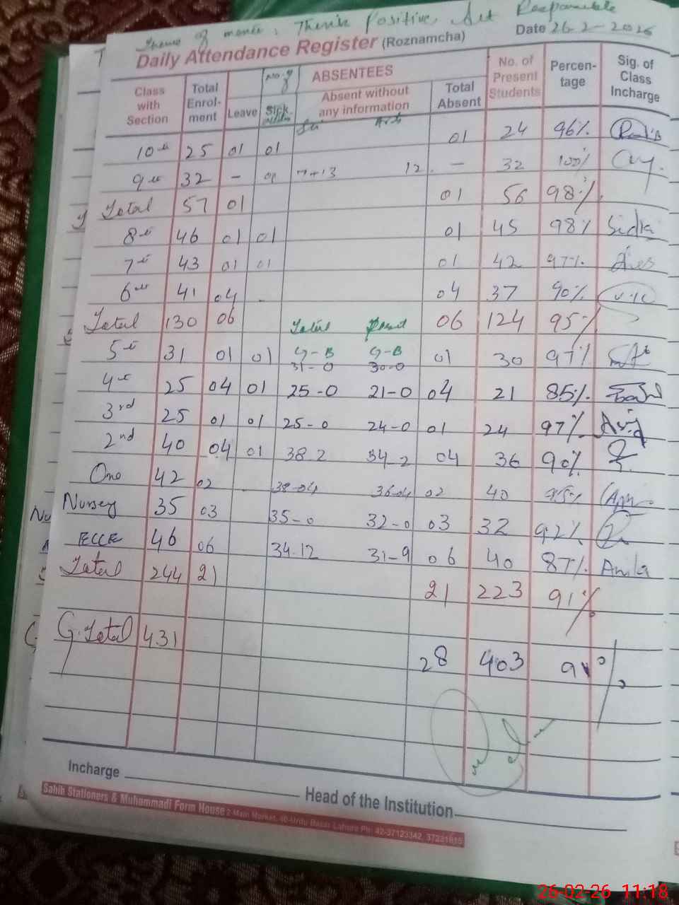 | Total Students Present | 0 | 40 | 40 | 36 | 24 | 21 | 30 | 37 | 42 | 45 | 31 | 24 | 402 | |||