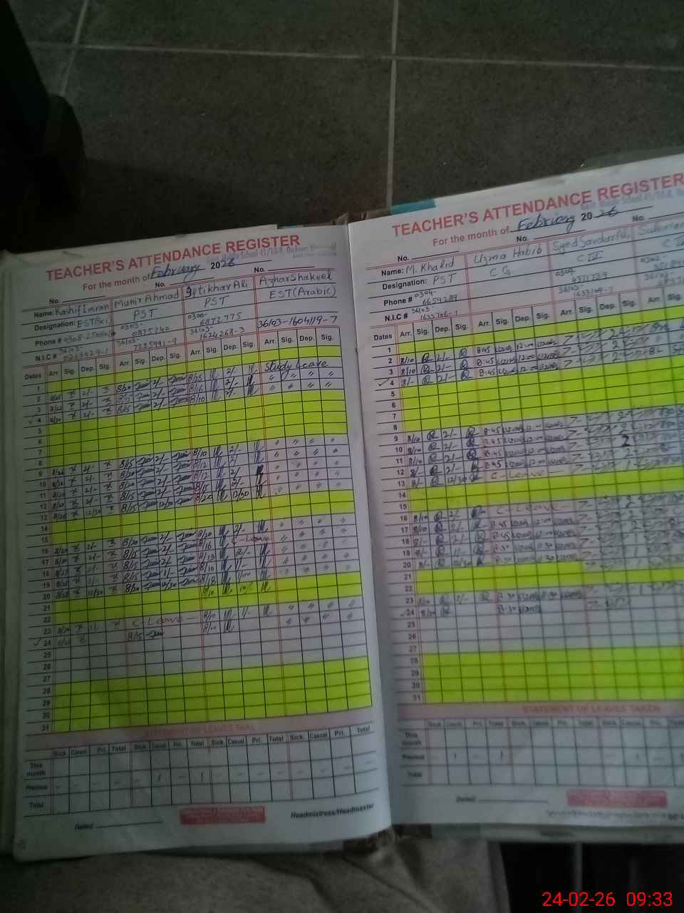 | CNIC | Full Name | Designation | R/C | Absence During Last Calender Month |