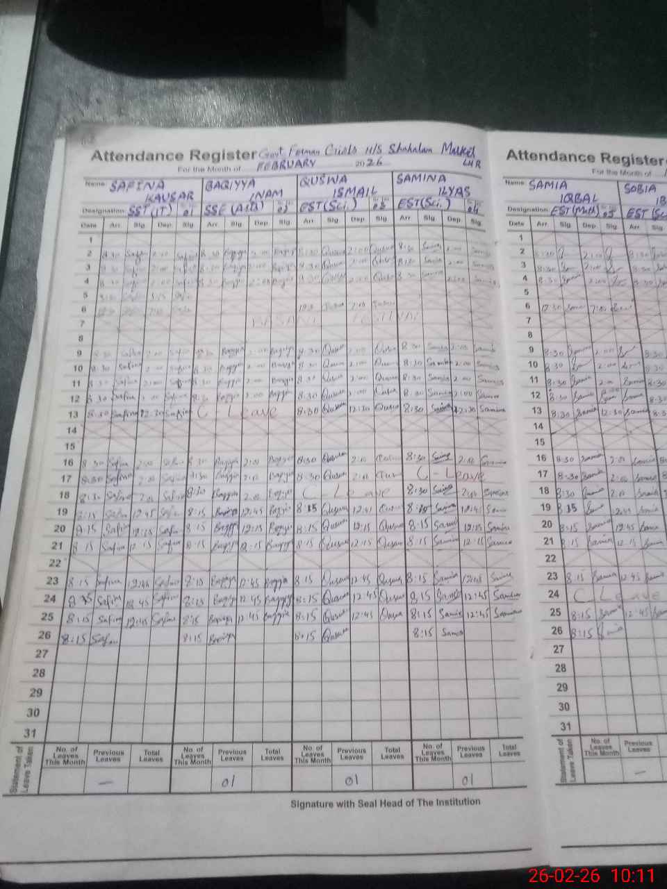 | Name: Sa**** Ka**** Designation: (School Headmaster's/Headmistress's) Incharge Phone/Cell Number: 03**** |