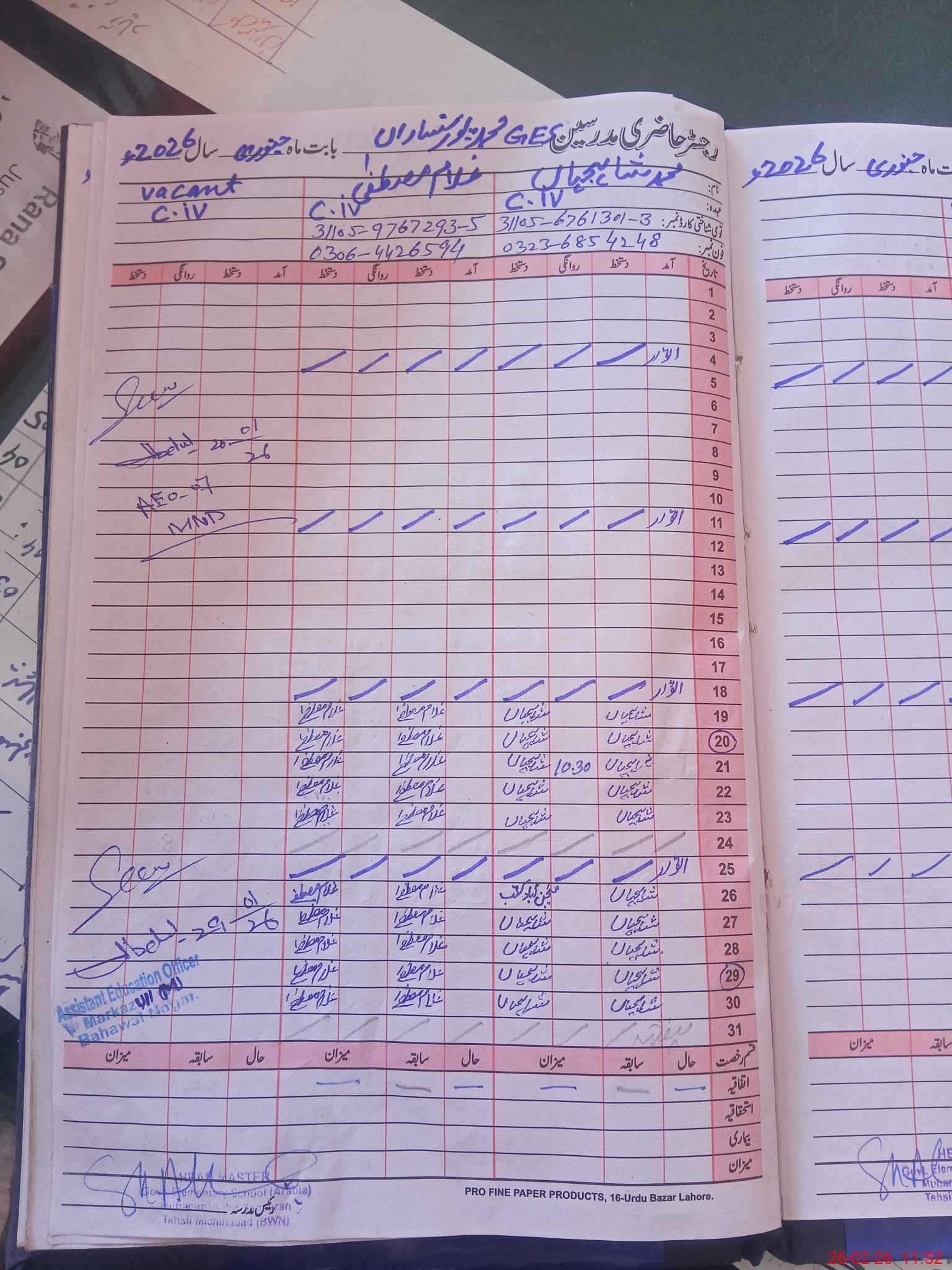 | Name: SH**** AH**** Designation: (School Headmaster's/Headmistress's) SST (G) Phone/Cell Number: 03**** |