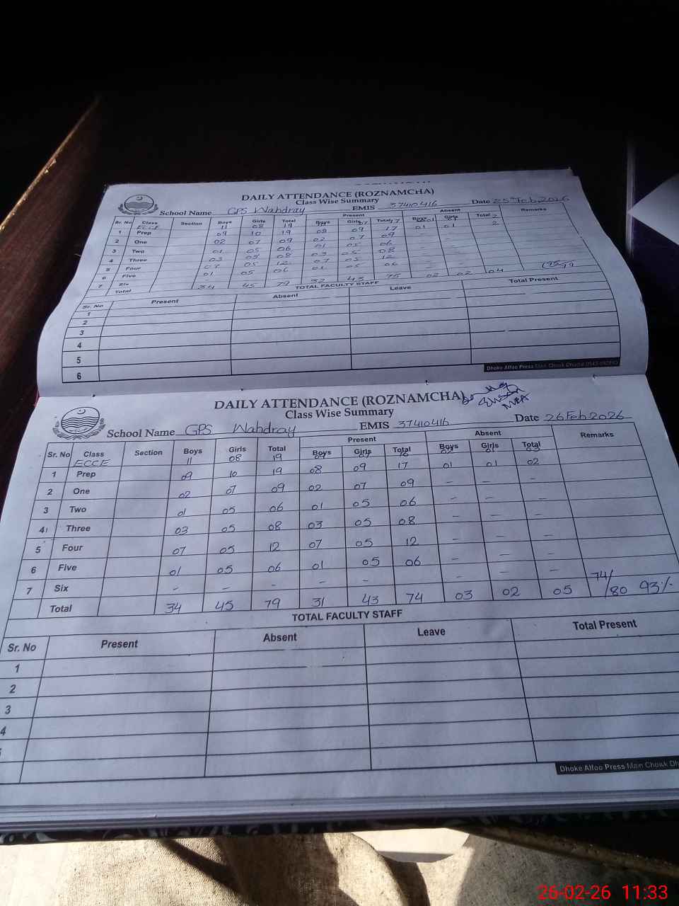| EMIS Code: 37410416 | Name of School: GPS WAHDRAY | |||