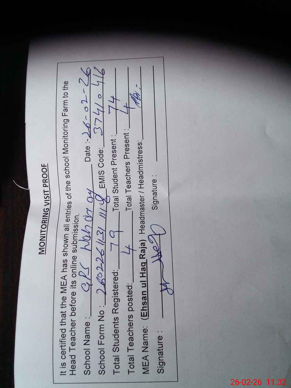 | Monitoring Date: 26-02-2026 | Start Time: 26-02-2026 10:59 AM | End Time: 26-02-2026 11:38 AM | Name of MEA: Eh**** UlHa**** Ra**** | |