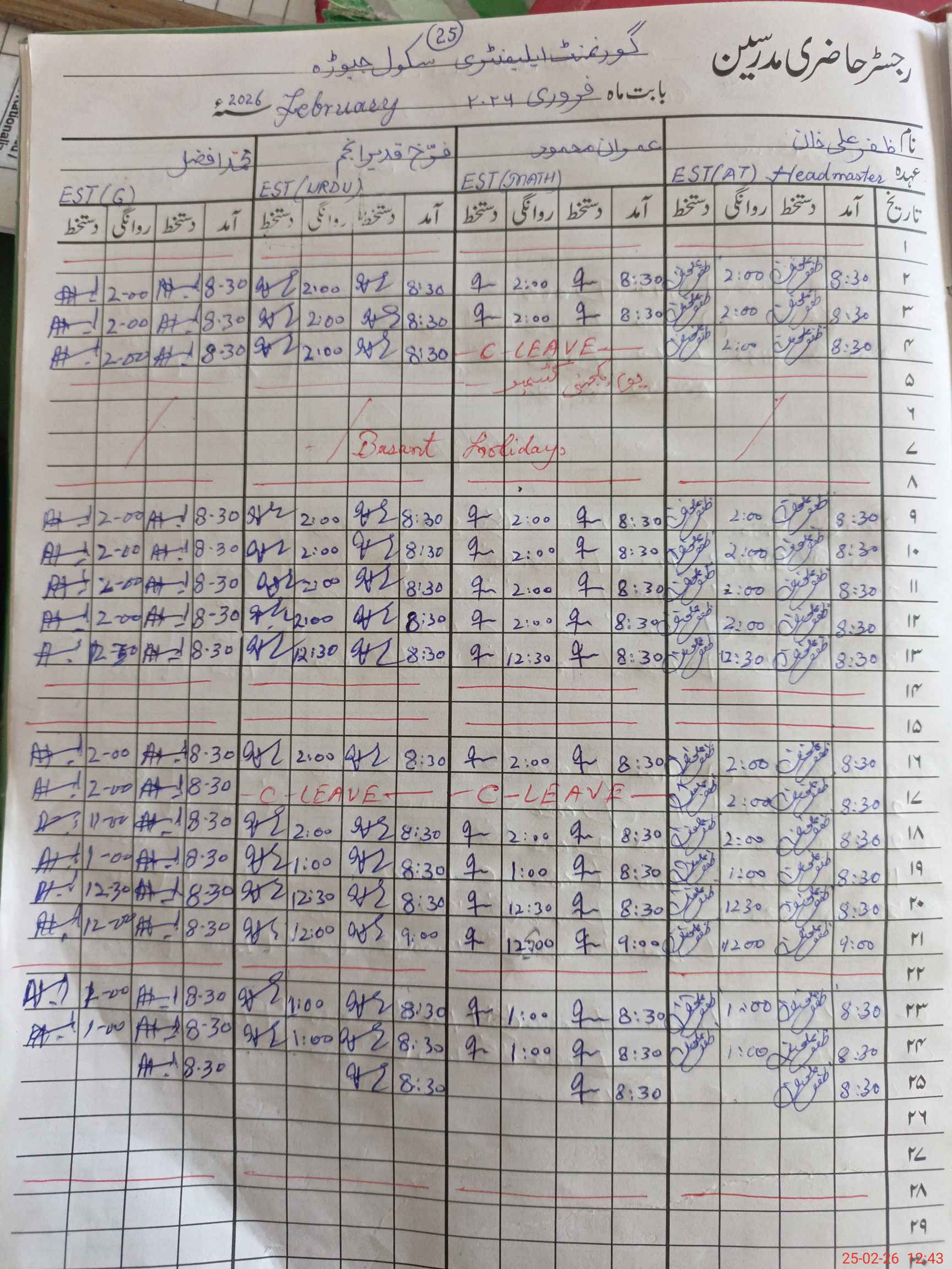 | Name: Za**** Al**** Kh**** Designation: (School Headmaster's/Headmistress's) EST AT Phone/Cell Number: 03**** |