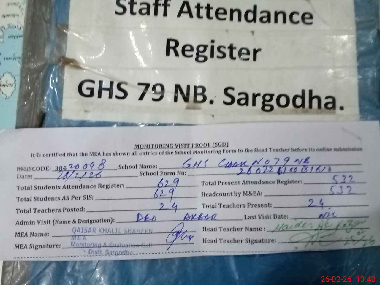 | Attendance Register | Head Teacher | MEA with School | Visit Proof |