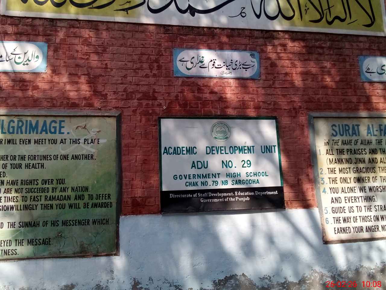 | District: SARGODHA | Tehsil: SARGODHA | Markaz: SECONDARY-WING | Level: High | |