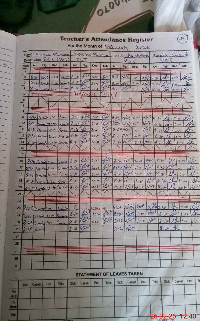 | Attendance Register | Head Teacher | MEA with School | Visit Proof |