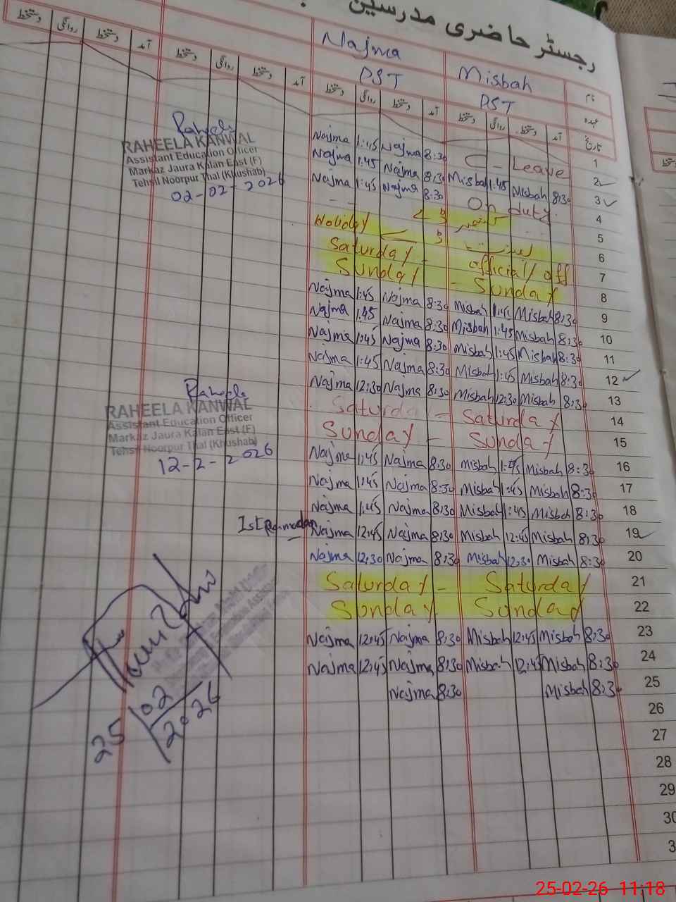 | CNIC | Full Name | Designation | R/C | Absence During Last Calender Month |