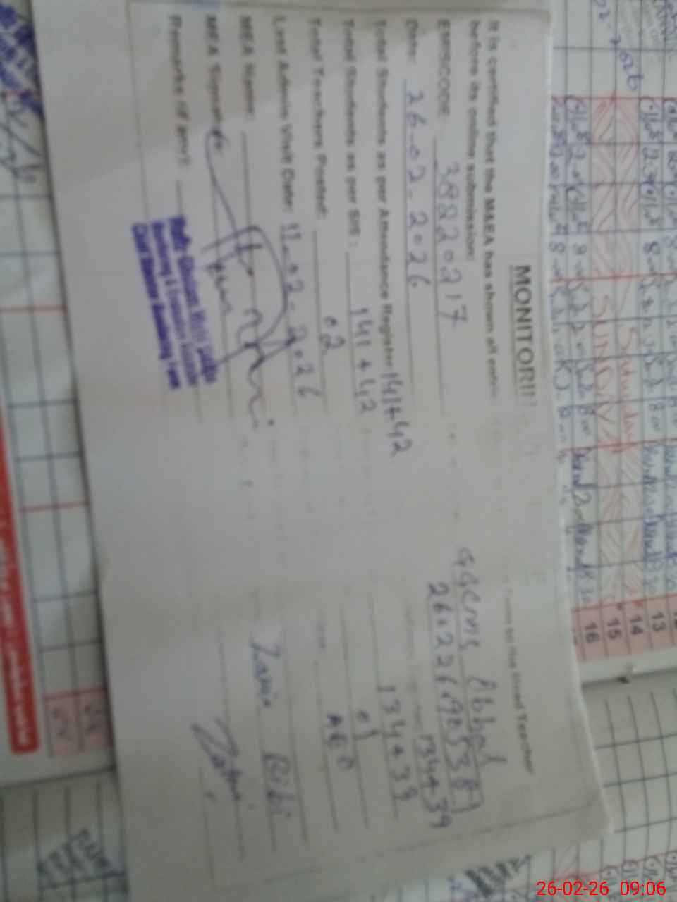 | Monitoring Date: 26-02-2026 | Start Time: 26-02-2026 08:45 AM | End Time: 26-02-2026 09:12 AM | Name of MEA: HA**** GH**** MO**** UDDI**** | |