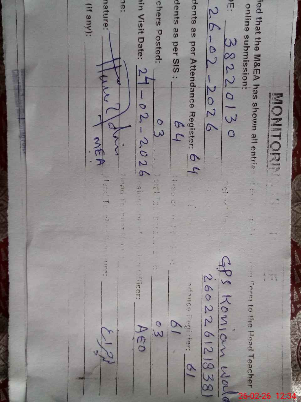 | Monitoring Date: 26-02-2026 | Start Time: 26-02-2026 12:07 PM | End Time: 26-02-2026 12:35 PM | Name of MEA: HA**** GH**** MO**** UDDI**** | |