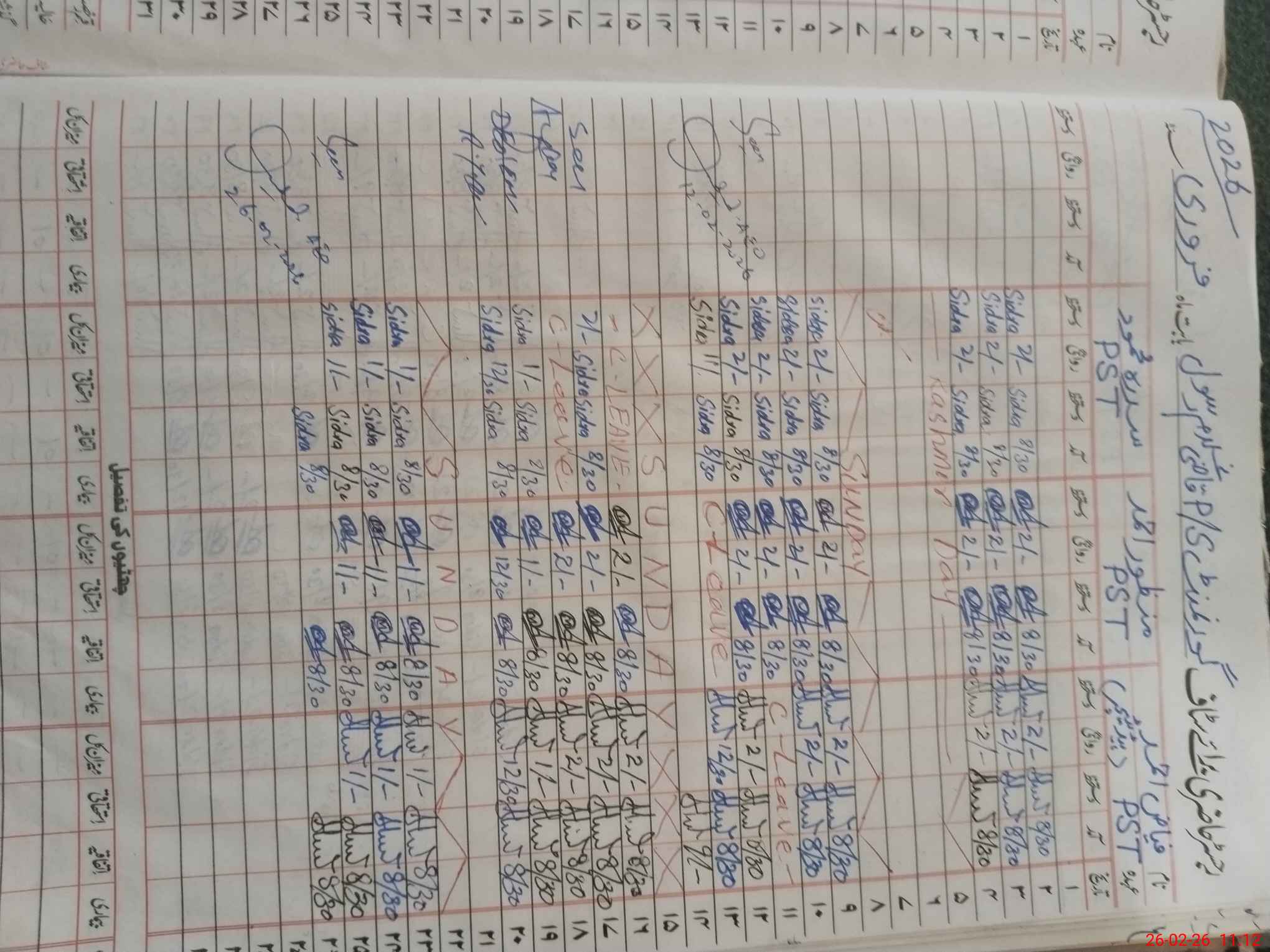 | Leave | Duty | Absent | Maternity | Medical | Ex- Pak |