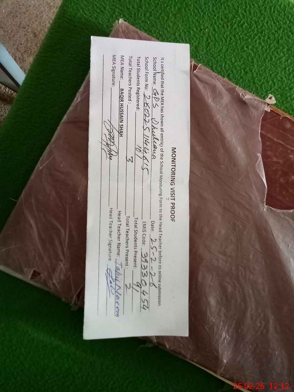 | EMIS Code: 39330454 | Name of School: GPS DHULYANA | |||
