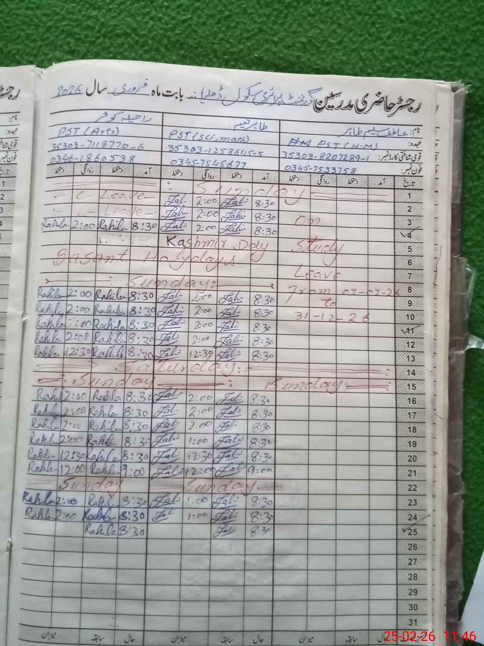 | Name: At**** Sa**** Ta**** Designation: (School Headmaster's/Headmistress's) PTC/JV Phone/Cell Number: 03**** |