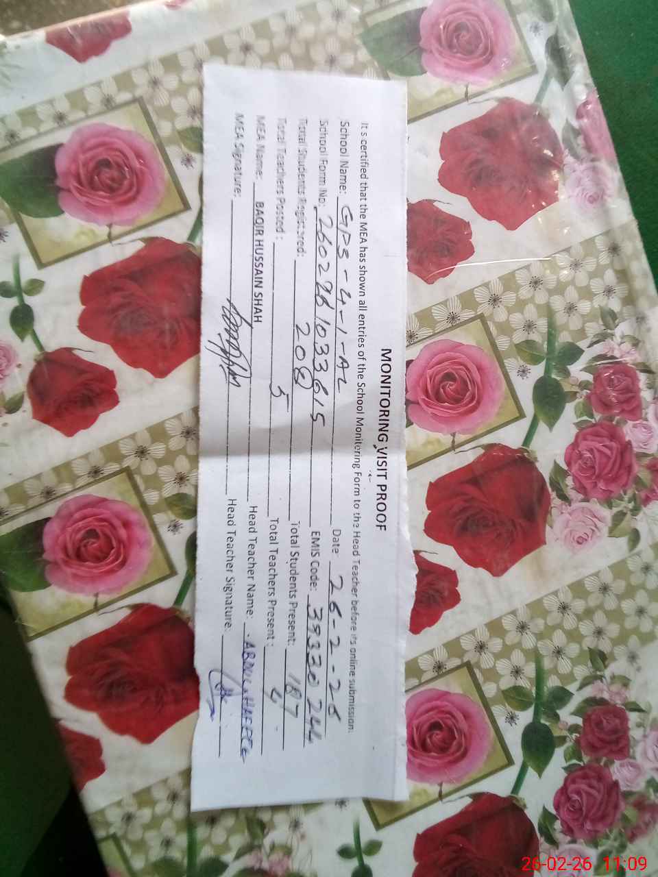 | EMIS Code: 39330244 | Name of School: GPS CHAK 4/1-AL KALAN | |||
