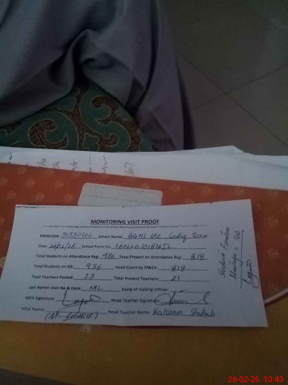 | EMIS Code: 31330102 | Name of School: GGHS MC SADIQ TOWN | |||