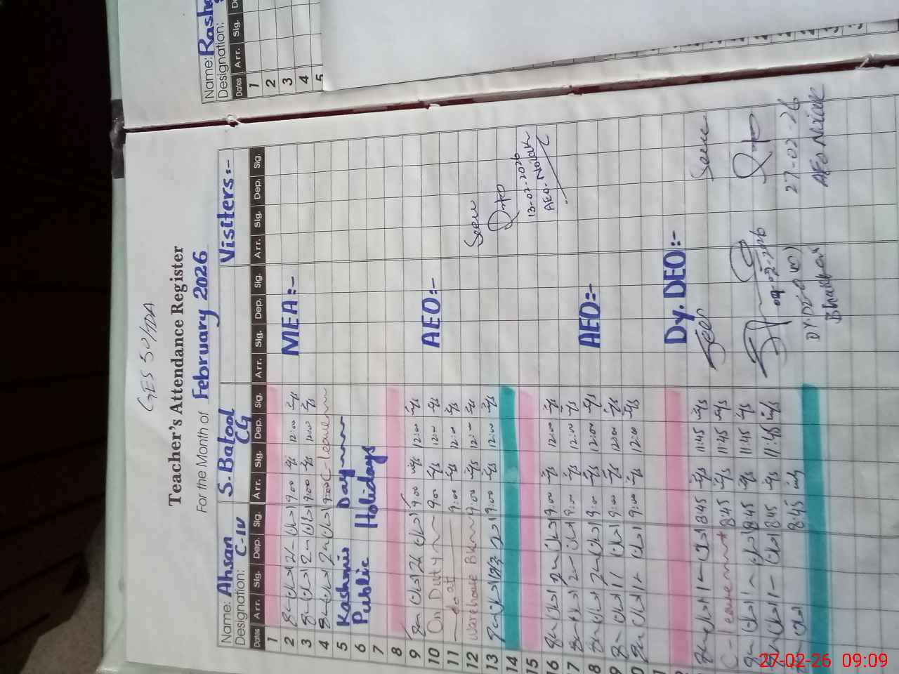 | Name: Mu**** Ra**** Sa**** Designation: (School Headmaster's/Headmistress's) SST Phone/Cell Number: 03**** |