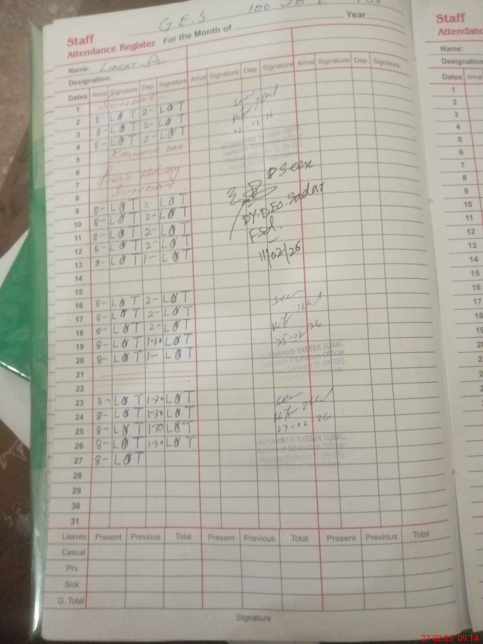 | Leave | Duty | Absent | Maternity | Medical | Ex- Pak |